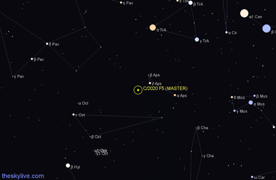 De esta manera, C2020 F5, denominado posteriormente MASTER, es un cometa de periodo mayor de 200 años, descubierto en la segunda quincena de Marzo de 2020 y el quinto cometa descubierto en esa quincena.