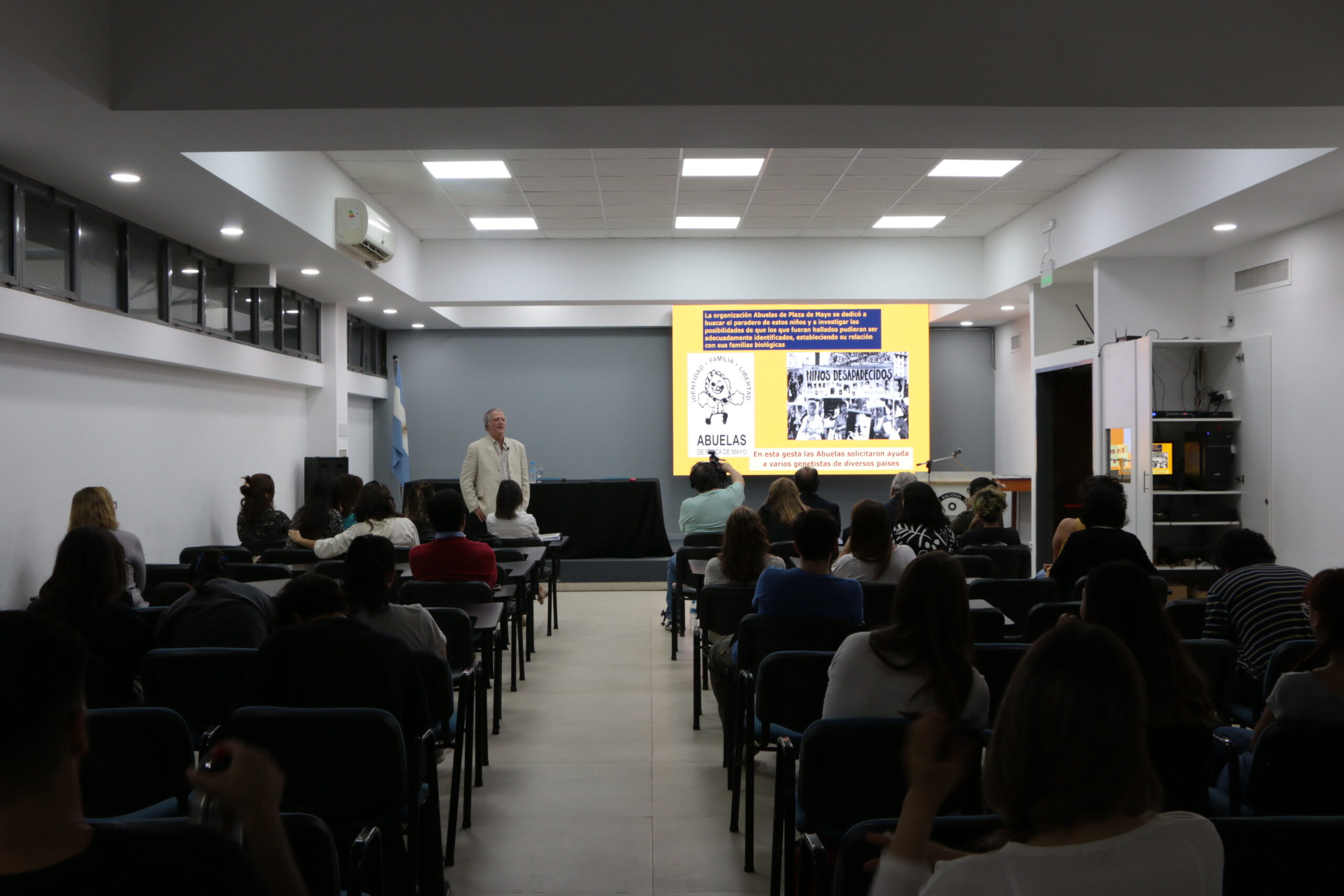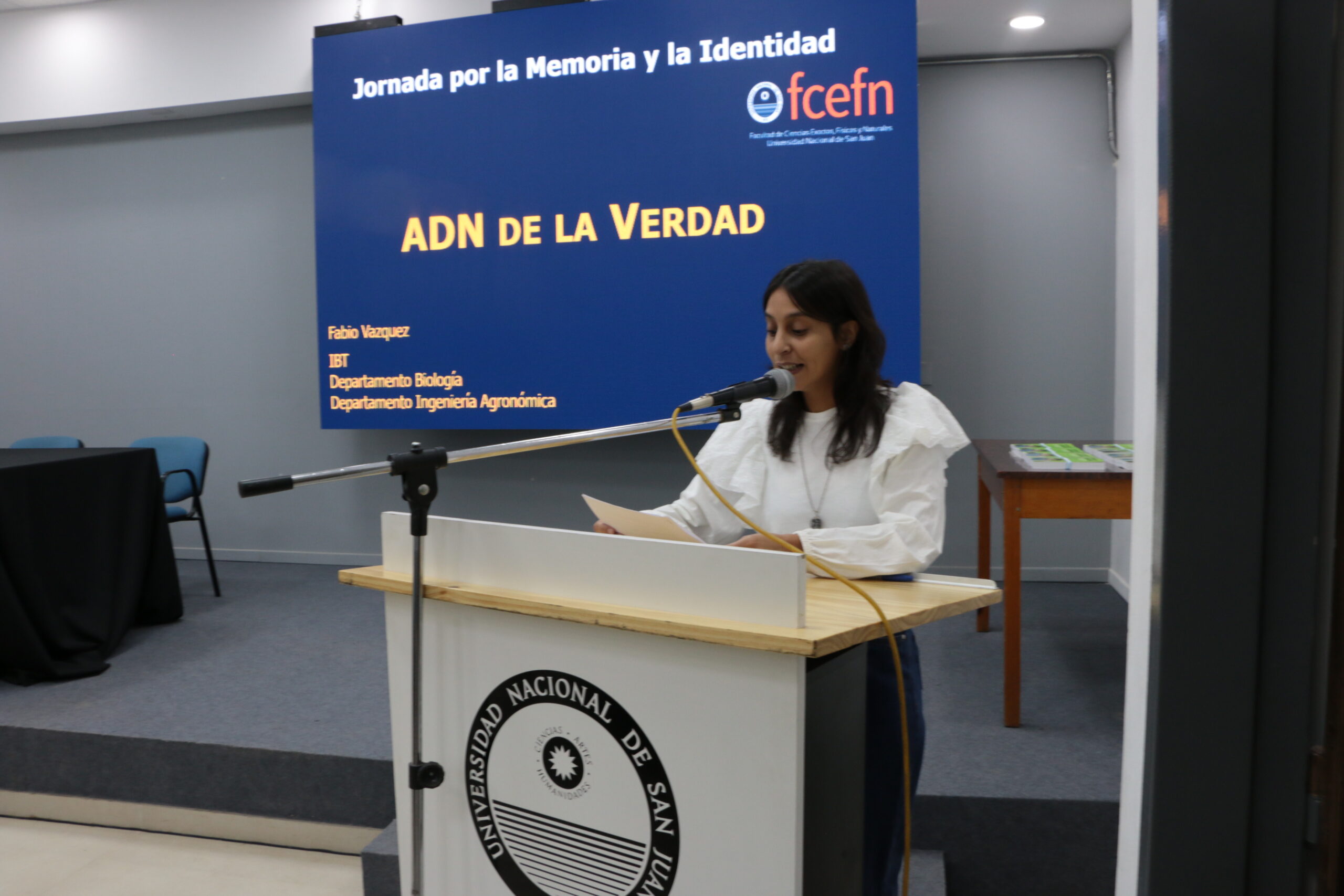 La jornada se dividió en tres actividades: comenzó con la clase abierta “El ADN de la Verdad”, a cargo del Dr. Fabio Vázquez. Luego, continuó con los diálogos entre Carlos Goya, nieto recuperado de San Juan, director de Promoción y Protección de Derechos Humanos, y el Ing. Rodolfo Bloch, Decano de la FCEFN. Por último, para horas la tarde se programó la proyección de la película “Argentina, 1985”.