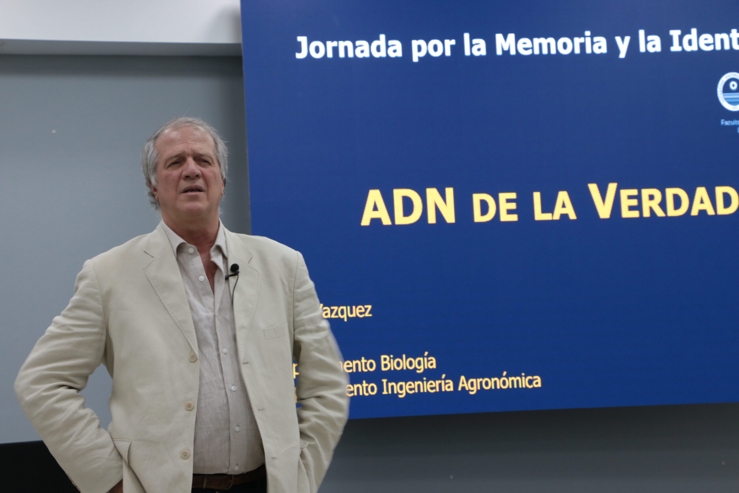 El Dr. Fabio Vázquez se doctoró en Ciencias Naturales en la Facultad de Ciencias Naturales y Museo de La Plata, de la Universidad Nacional de La Plata. Es profesor de la cátedra Genética de la carrera de Biología de nuestra facultad. Fabio explicó los procesos y técnicas que permiten el reconocimiento de nietos y nietas a partir de datos genéticos de sus abuelas.