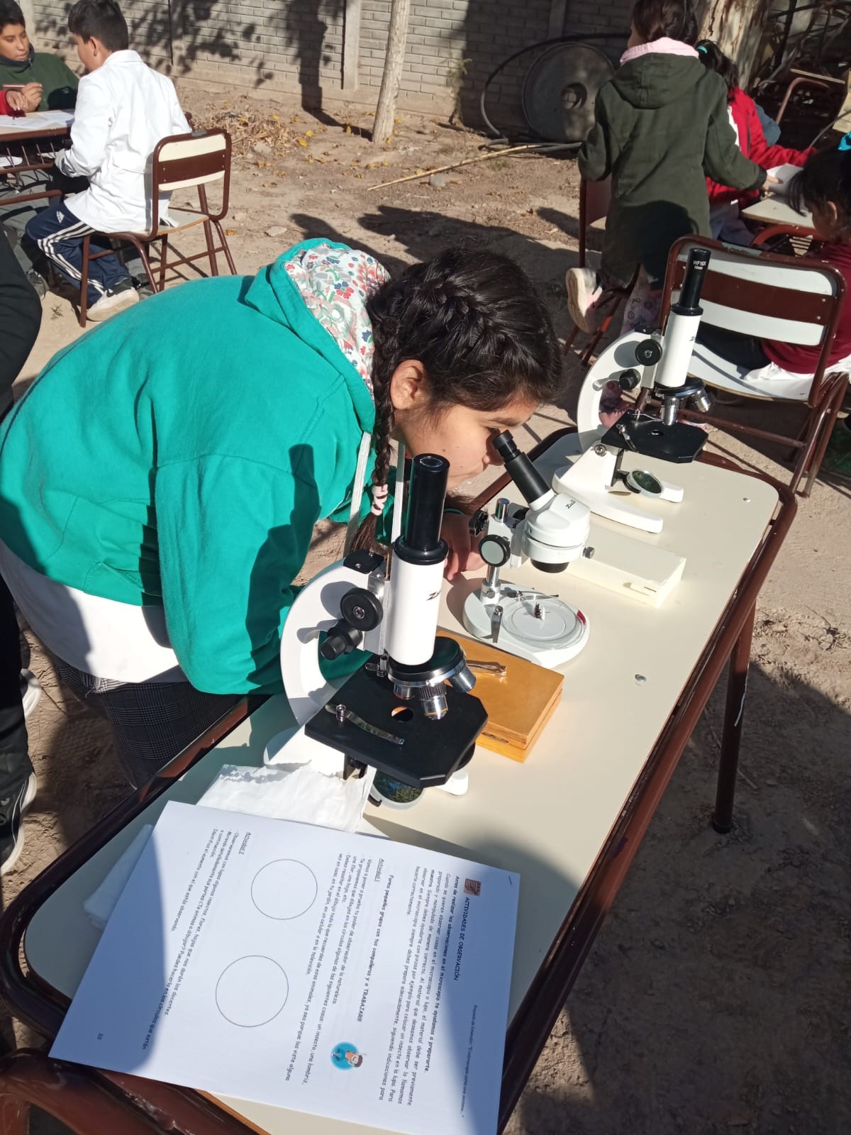 El pasado 6 de junio se concretó una actividad de Extensión entre docentes y alumnos avanzados de la carrera de Biología de la Facultad de Exactas, Físicas y Naturales (FCEFN) en una escuela rural en Pocito. La experiencia se enmarca en el proyecto “El microscopio como una ventana al pequeño mundo que nos rodea: una experiencia entre la Escuela y la Universidad”.