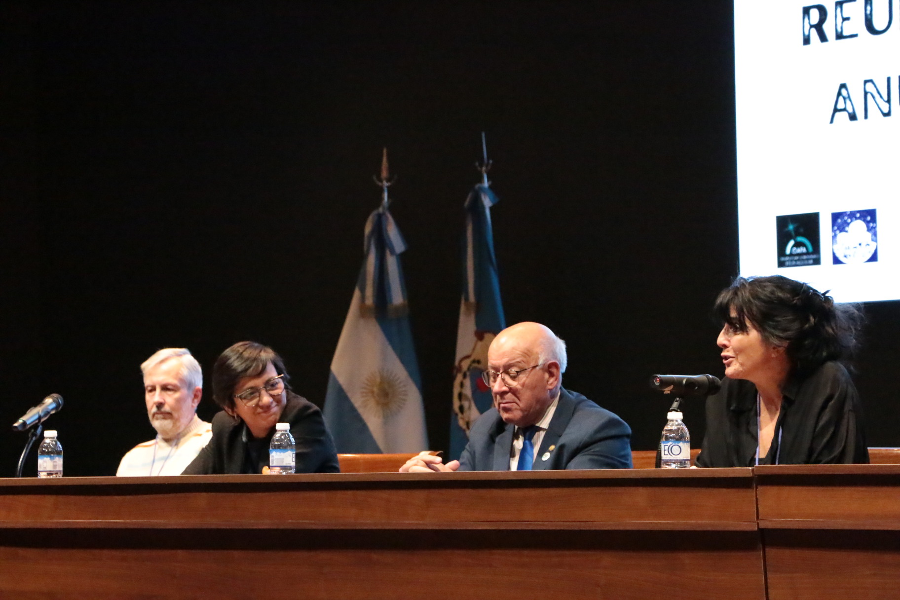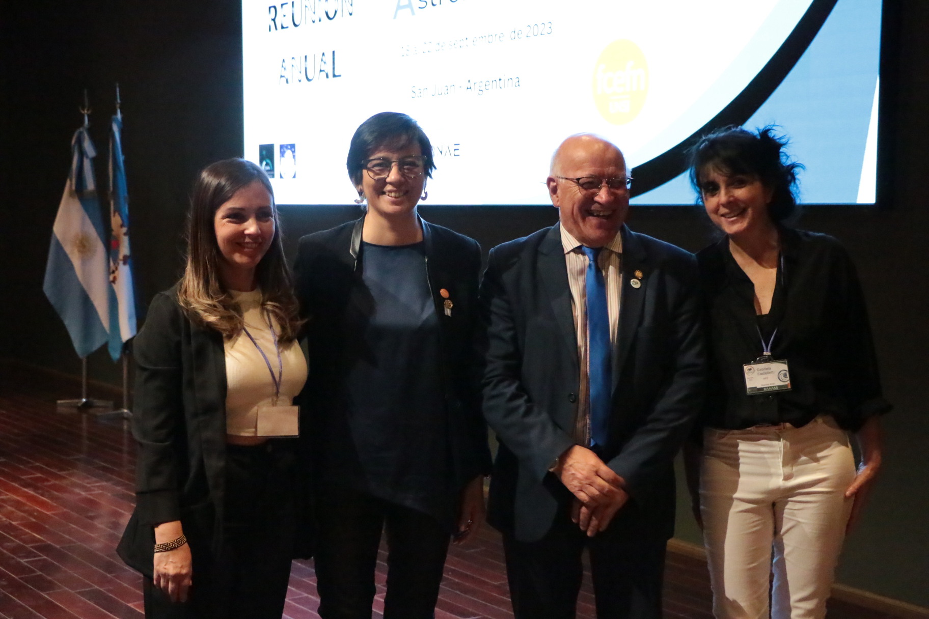 En la mesa de autoridades estuvieron presentes la Vicedecana de la FCEFN, Dra. Natalia Núñez; el Rector de la UNSJ, Mg. Ing. Tadeo Berenguer; la Coordinadora del comité organizador, Dra. Georgina Coldwell; el Presidente del comité científico, Dr. Hernán Muriel; Presidenta de la Asociación Argentina de Astronomía, Dra. Gabriela Castelletti.