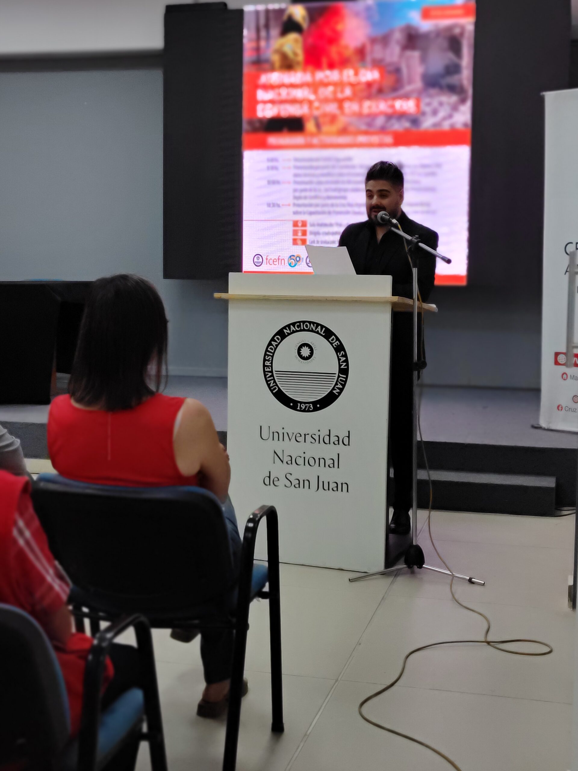 Dr. Gustavo Ortiz: Bueno, el 23 de noviembre se llevó a cabo esta jornada del Día de la Defensa Civil a nivel nacional y la celebramos aquí en Exactas, en conmemoración a aquellas personas que ayudaron durante la tragedia del terremoto de Caucete de 1977. Ese día se conmemora a aquellos que salieron a ayudar a compatriotas sanjuaninos durante esa tragedia.