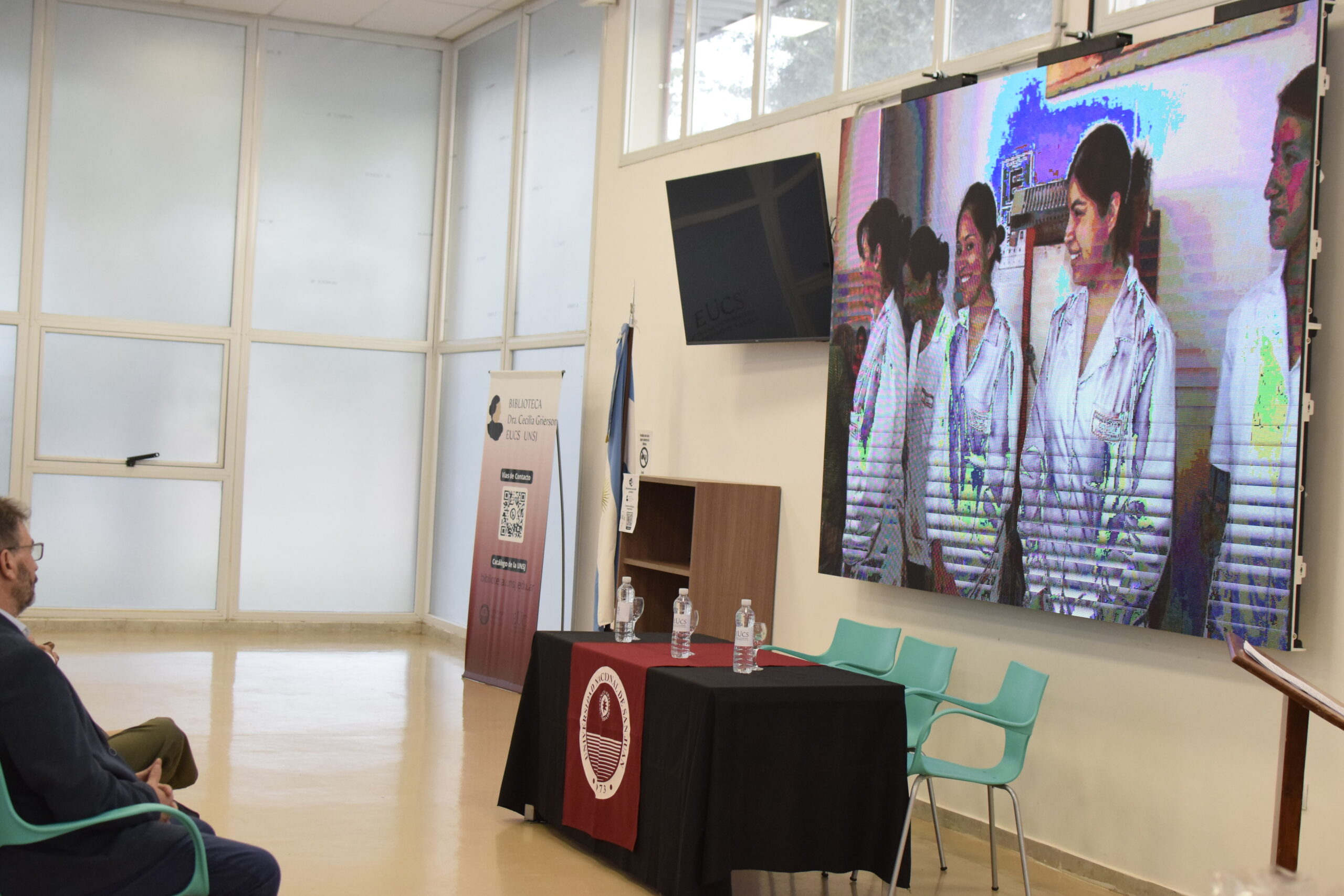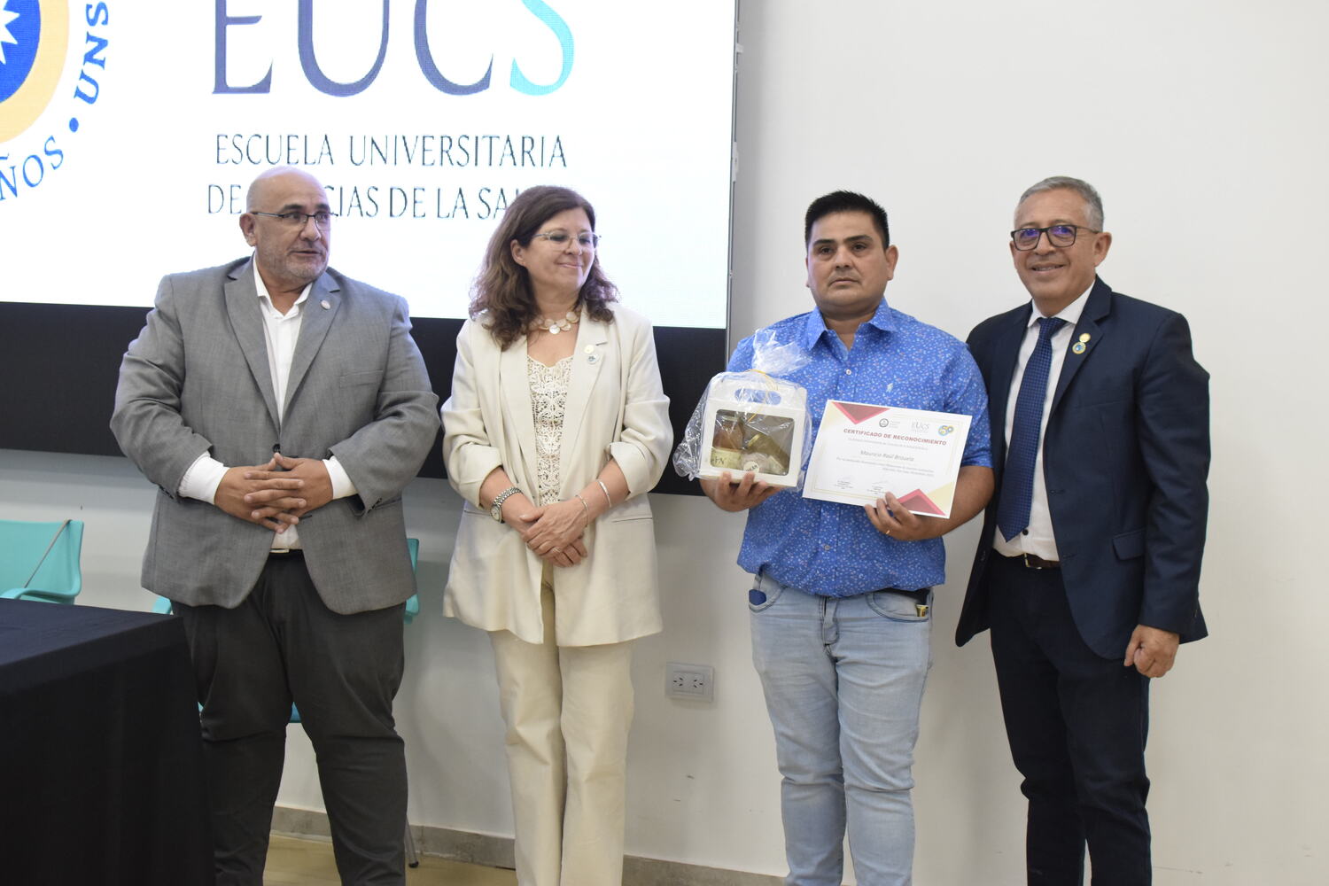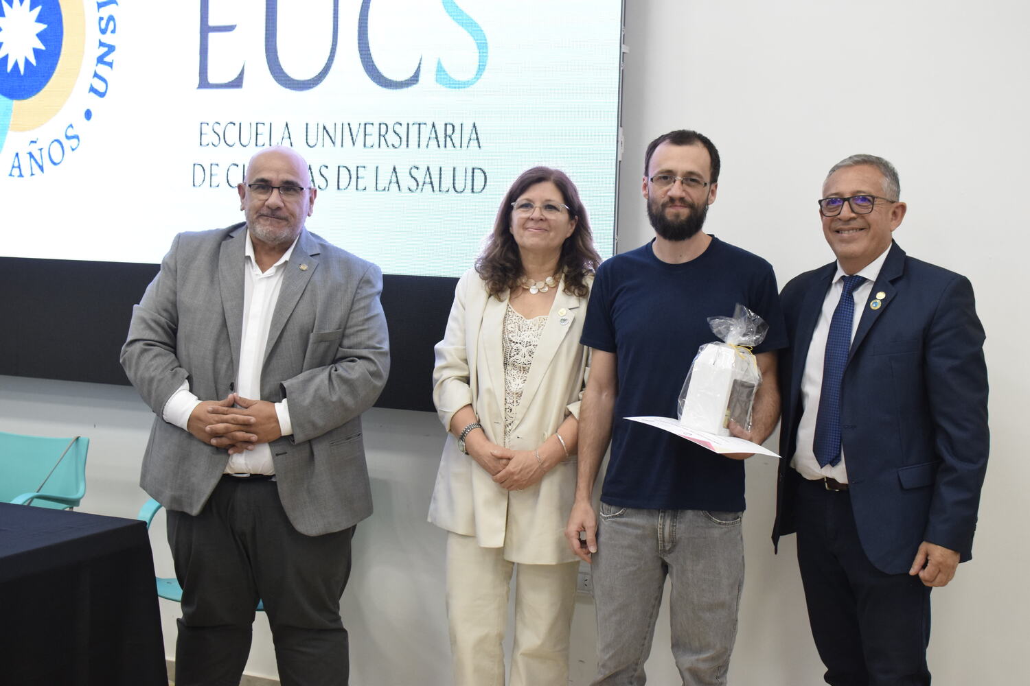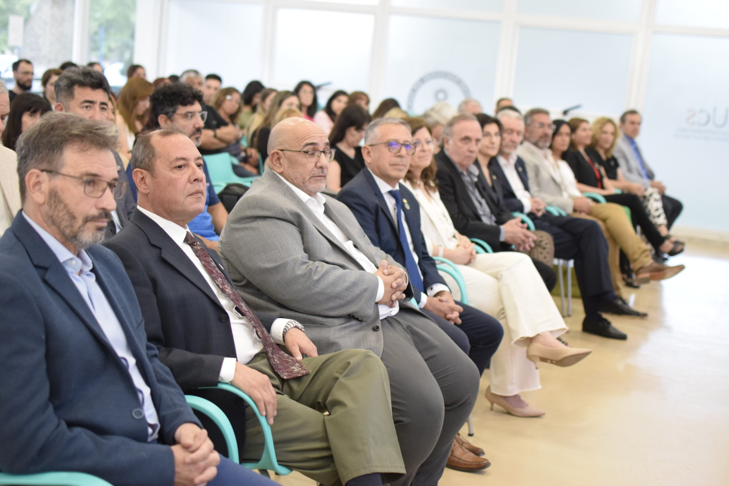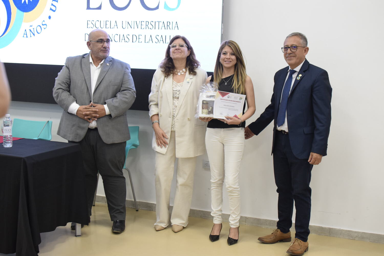 En la tarde del jueves 21 de diciembre se celebró el 7º Aniversario de la Escuela Universitaria de Ciencias de la Salud (EUCS). Al acto asistió la Sra. Vicerrectora de la Universidad Nacional de San Juan (UNSJ), Dra. Analía Ponce y estuvieron presentes autoridades de todas las unidades académicas, entre ellos/as sus anfitriones el Director de la EUCS, Lic. Esp. Ángel Pinto y el Vicedirector, Lic. Esp. Oscar Quintero. Junto a ellos, el Decano de la Facultad de Ciencias Exactas, Físicas y Naturales (FCEFN), Ing. Rodolfo Bloch; el Decano de la Facultad de Arquitectura Urbanismo y Diseño, Arq. Guillermo Velasco; la Decana de la Facultad de Filosofía, Humanidades y Artes, Mag. Myriam Arrabal y la Vicedecana de la Facultad de Ingeniería, Dra. Ing. Andrea Díaz.