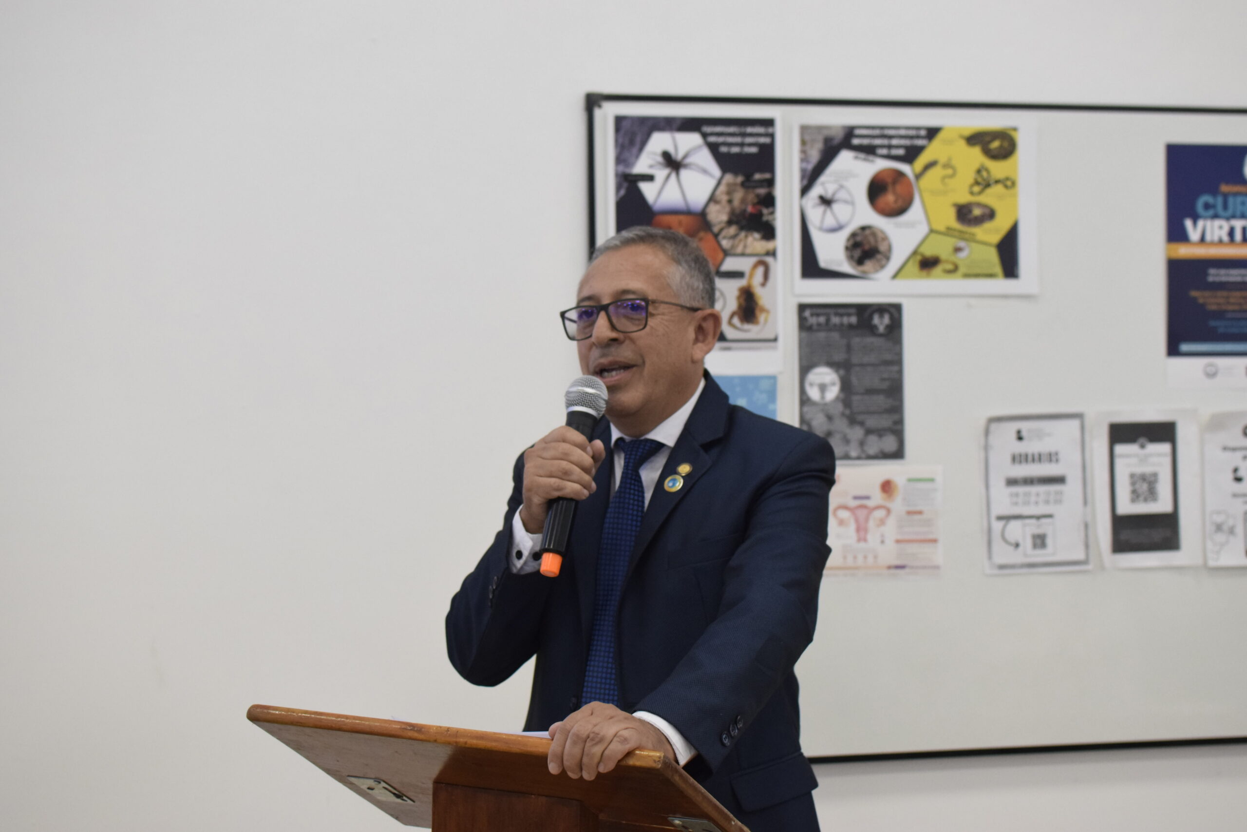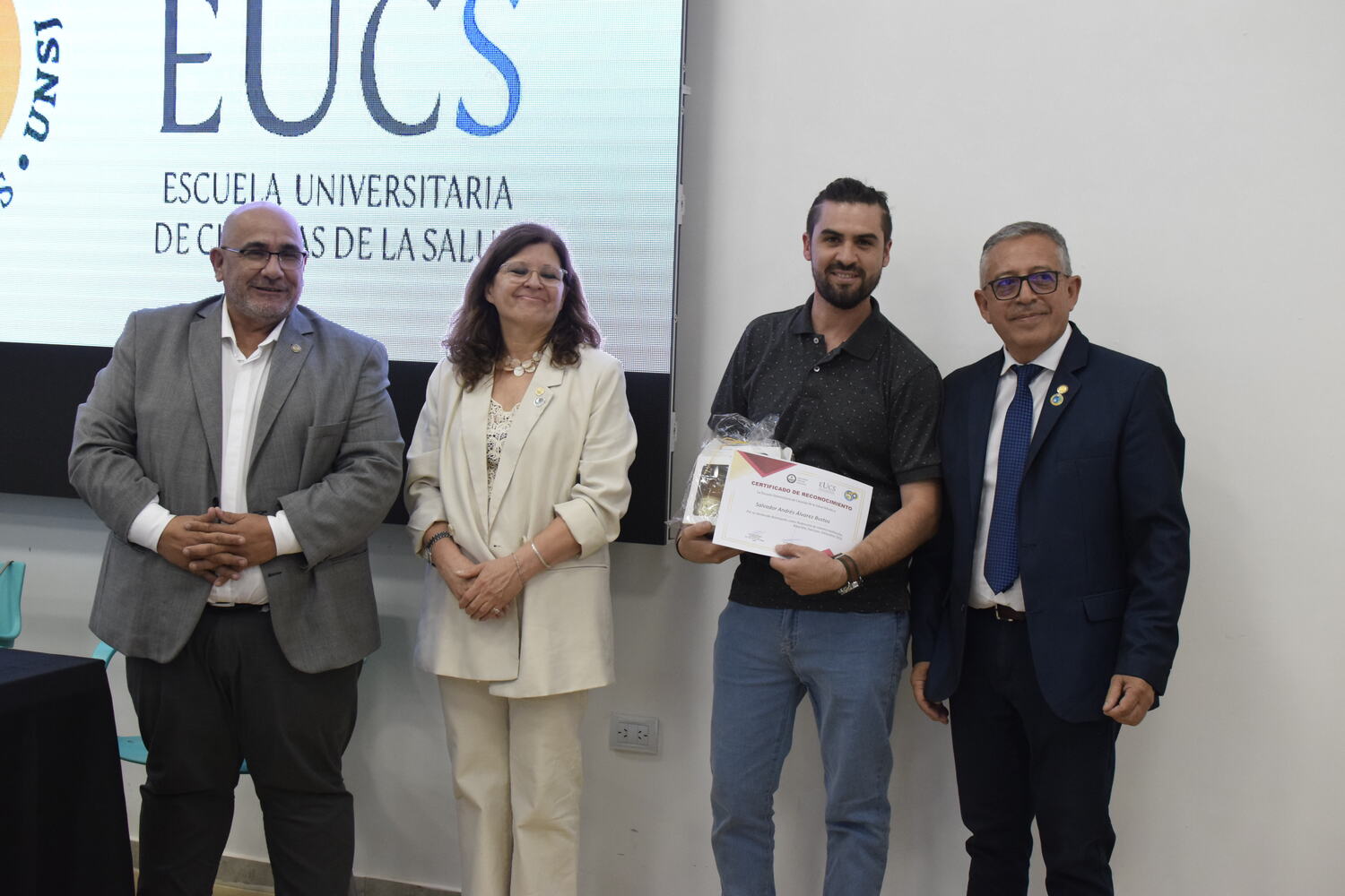 El Director de la EUCS, Esp. Lic. Ángel Pinto en su discurso comentó: “En el año 2016 esta institución fue establecida como unidad académica independiente, con la visión de ser un faro de conocimiento, innovación y excelencia en el campo de la ciencia de la salud. Nuestra convicción es contribuir a dar respuesta a los principales problemas de salud de la región a través de la gestión de conocimientos, siendo libres del desarrollo de la educación superior y la investigación de la salud”.