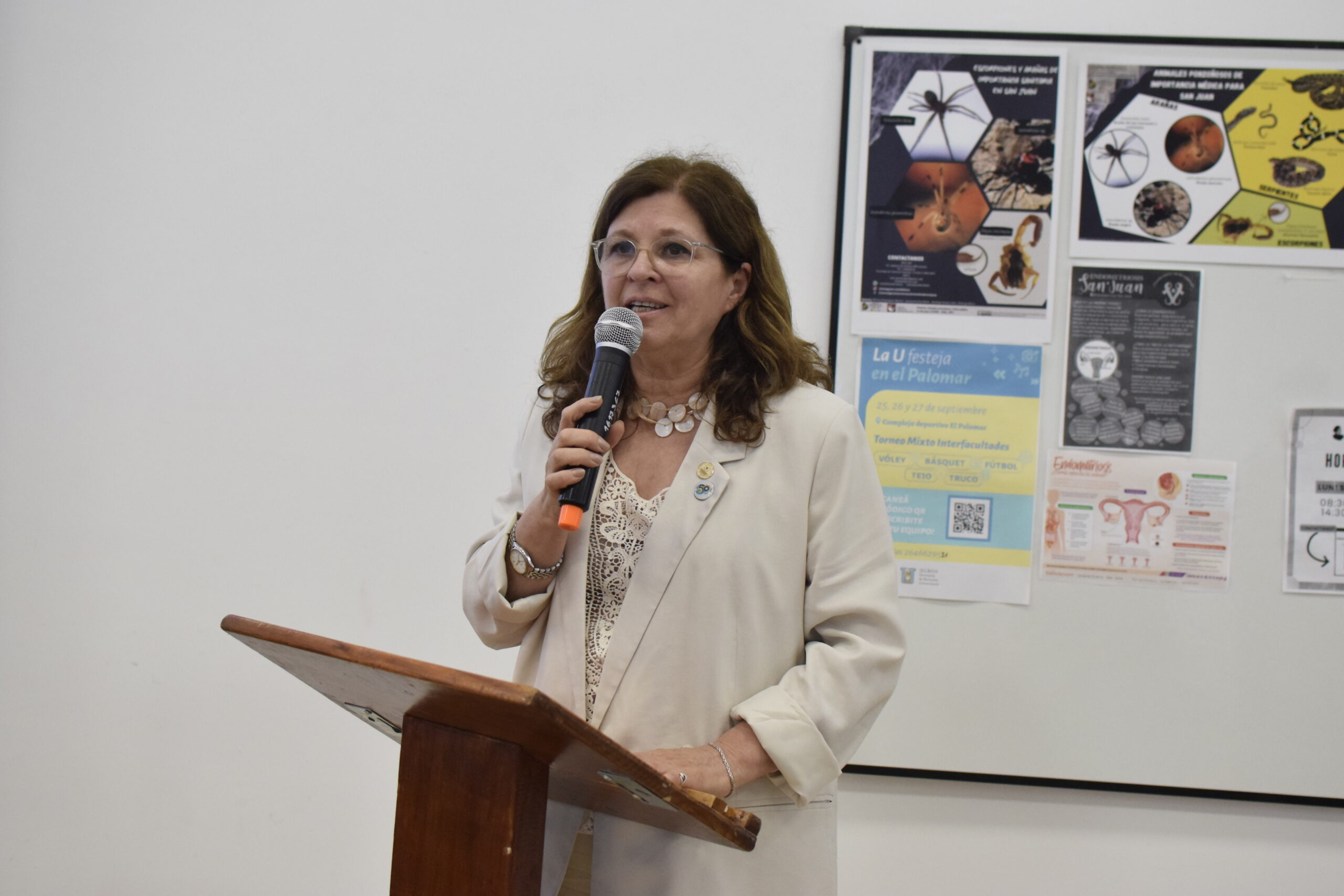 La Sra. Vicerrectora de la UNSJ se refirió en su discurso al crecimiento de la propuesta académica de la EUCS: “hoy la Escuela Universitaria de Ciencias de la Salud tiene carreras de grado y de pregrado y se proyecta en dos carreras que están ahí, en la puerta del horno, por decirlo con una jerga criolla (…) creemos que esto no sólo va a ser un aporte para los futuros alumnos y alumnas que estas carreras puedan convocar, sino para la comunidad ciudadana en su totalidad. Ojalá que nuestros propósitos se den acompañados de las políticas públicas en las que son posibles, porque sólo con ganas no vamos a poder avanzar en esto”.