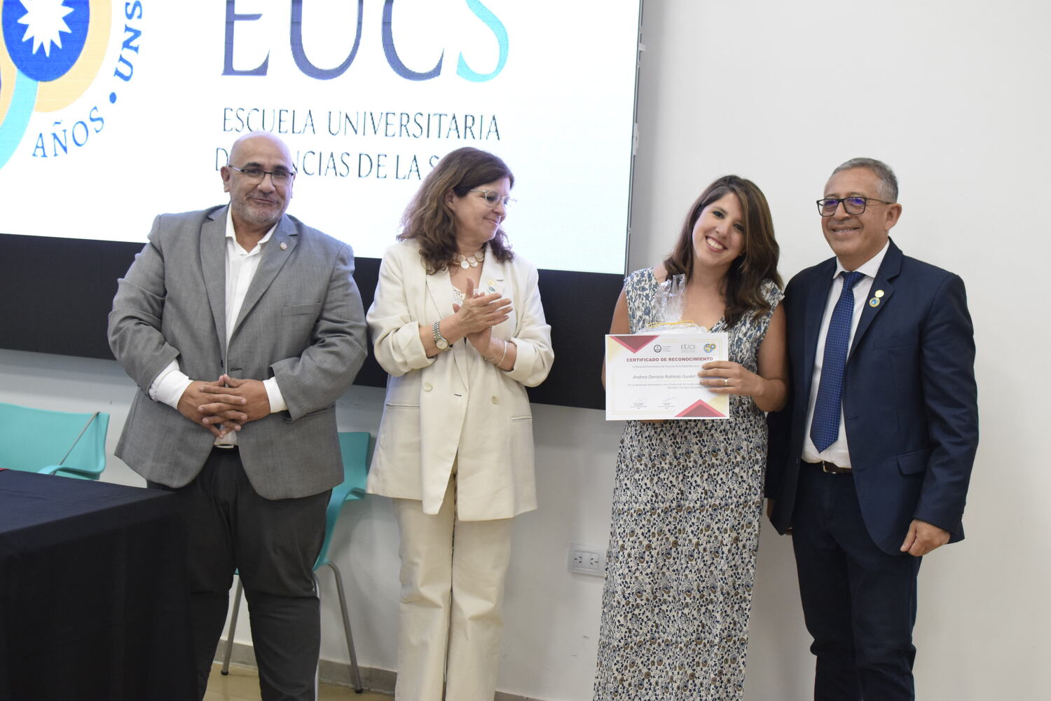 La Dra. Ana Naranjo, quien ocupa hoy el cargo de Secretaria de Investigación y Extensión en la EUCS, se expresó en el 7° aniversario de la Escuela: “Siento muchísima emoción, porque nosotros hicimos esto de cero. Tomé la escuela en un momento que no tenía personal nodocente, no había bancos y en una semana teníamos que recibir a los alumnos (…) ver cómo está la escuela ahora, cómo ha crecido, las propuestas académicas, es algo que me emociona muchísimo y me llena de orgullo haber sido parte de todo este proceso”.