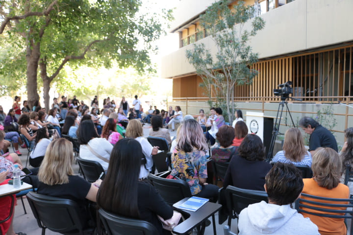 El día 4 de marzo por la mañana en los jardines del CUIM, la reconocida investigadora, socióloga y militante feminista Dora Barrancos estuvo presente en la Facultad de Ciencias Exactas, Físicas y Naturales (FCEFN). Participó del conversatorio “Mujeres y Derechos en América Latina: una saga desde el siglo XX”. La actividad se enmarca dentro del ‘Mes de la Mujer’, organizada por la Secretaria de Investigación de la Facultad y el Gabinete de Articulación en Género y Educación Superior (GAGES). Estuvieron presentes autoridades de la Universidad Nacional de San Juan (UNSJ).