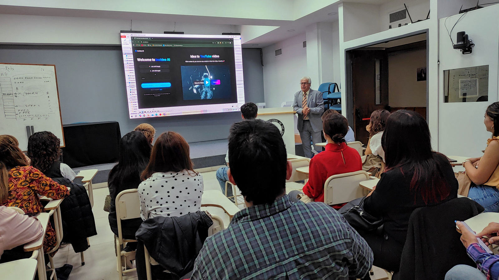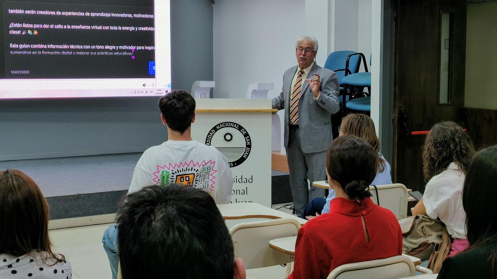 El Ing. Sirvente ofreció una conferencia inicial donde presentó un recorrido por las diversas herramientas tecnológicas que implementa en sus procesos de alfabetización y capacitación digital. Durante su exposición, realizó demostraciones prácticas sobre la creación de videos, elaboración de guiones y generación de documentación para el aula utilizando herramientas de Inteligencia Artificial.