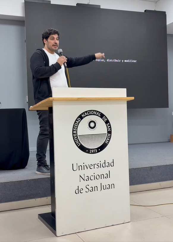 Como ejemplo de los nuevos rumbos que exploró el FLISoL 2025 está el hecho de que se trabajaron temáticas que abarcaron Geofísica, análisis forense, Neurocirugía e incluso una desafiante perspectiva filosófica que brindó el Secretario Académico de Exactas, Claudio Alessio, en la charla titulada “El Código de la Innovación”, donde el expositor estableció un paralelismo entre los cuatro principios del software libre (usar, copiar, modificar y distribuir) y lo que denominó “el código de la innovación”. Estos principios fundamentales son los que han permitido la evolución tecnológica desde los albores de la humanidad, cuando los conocimientos se transmitían mediante la observación y comunicación entre individuos.