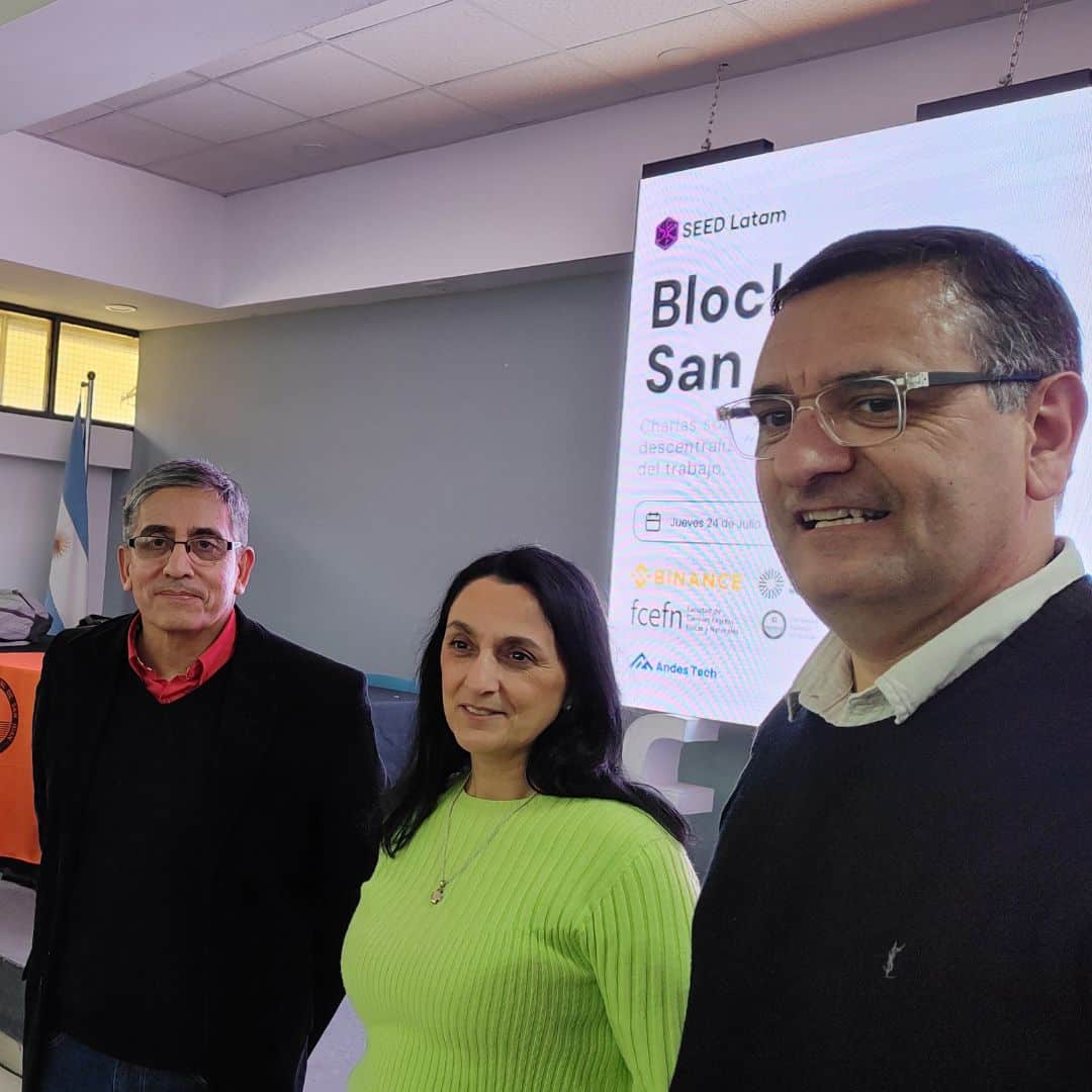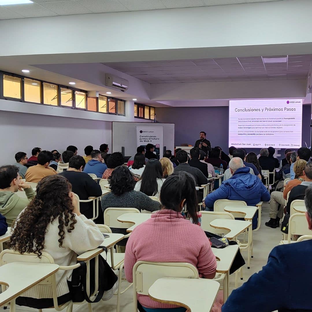 Entre las temáticas abordadas se destacaron las finanzas descentralizadas, el ecosistema Binance Pay, y aspectos técnicos como el montaje de nodos blockchain, este último a cargo del Ing. Marcelo Alberto Gómez de la propia UNSJ. El encuentro cerró con una charla sobre oportunidades profesionales en Web3 y recruiting en la industria.