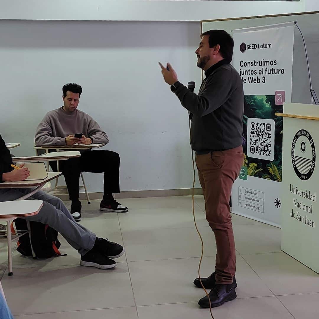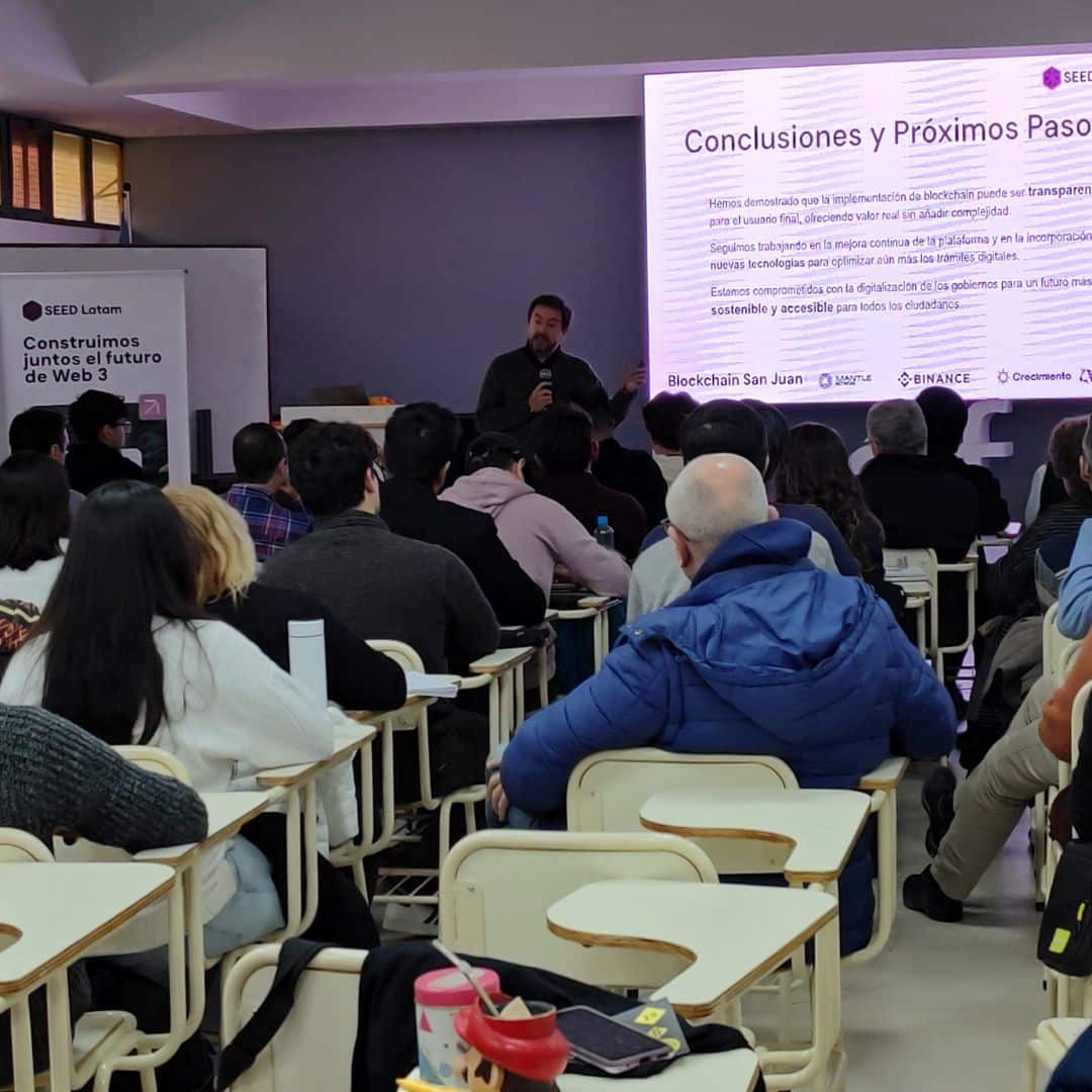 El evento, que contó con la presentación de Pablo Cabona, Marketing Manager de Seed Latam, reunió a cerca de 10 especialistas en tecnología blockchain durante cuatro horas de conferencias y paneles temáticos, dirigidos principalmente a estudiantes, docentes y profesionales del área informática.