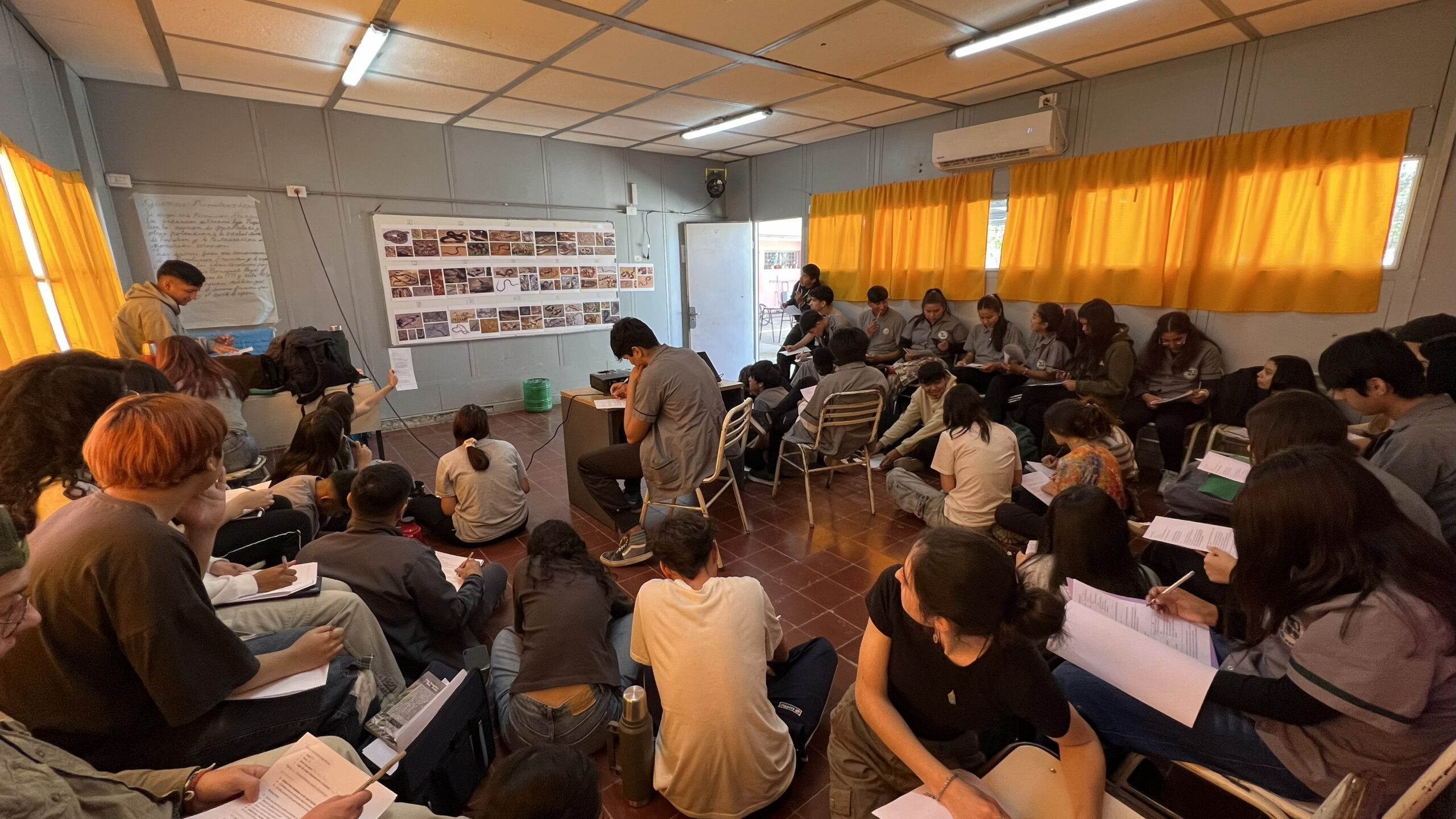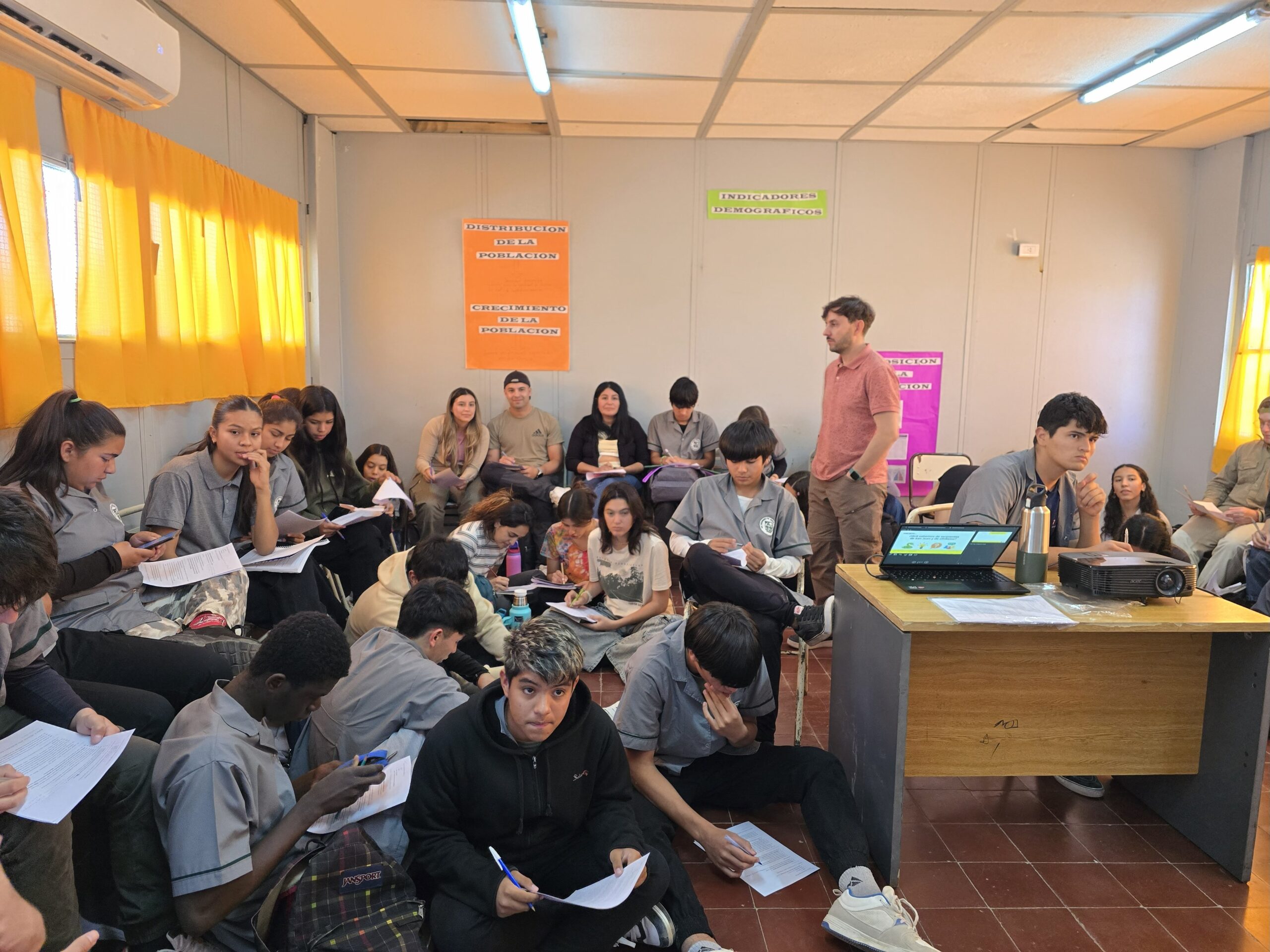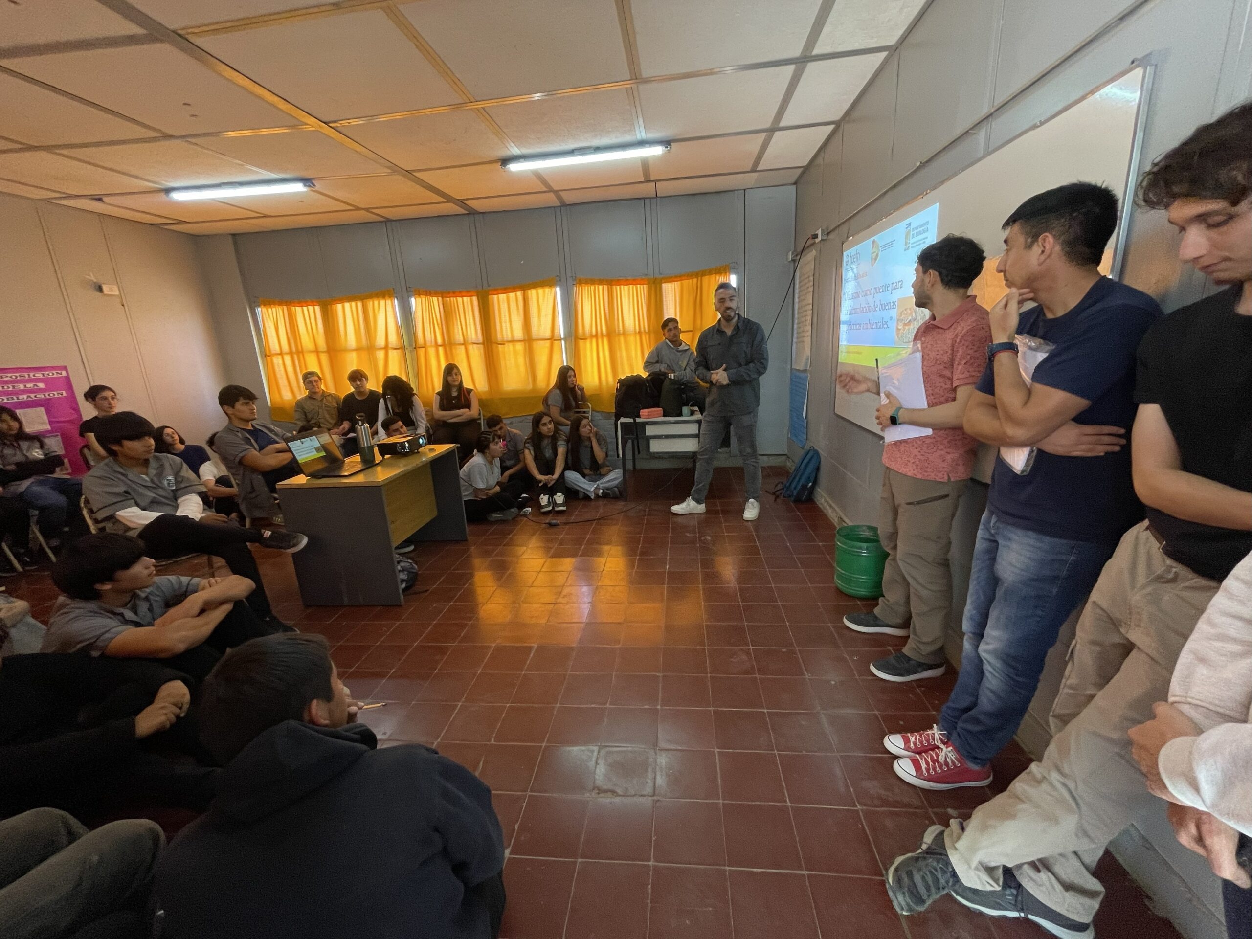 Como parte de las primeras actividades, el equipo docente y estudiantil organizรณ el pasado 6 de octubre un encuentro en El Encรณn con integrantes de la Escuela Secundaria Juan Carlos Navarro, a la que asisten niรฑas, niรฑos y adolescentes de comunidades locales, entre ellas la comunidad Huarpe.