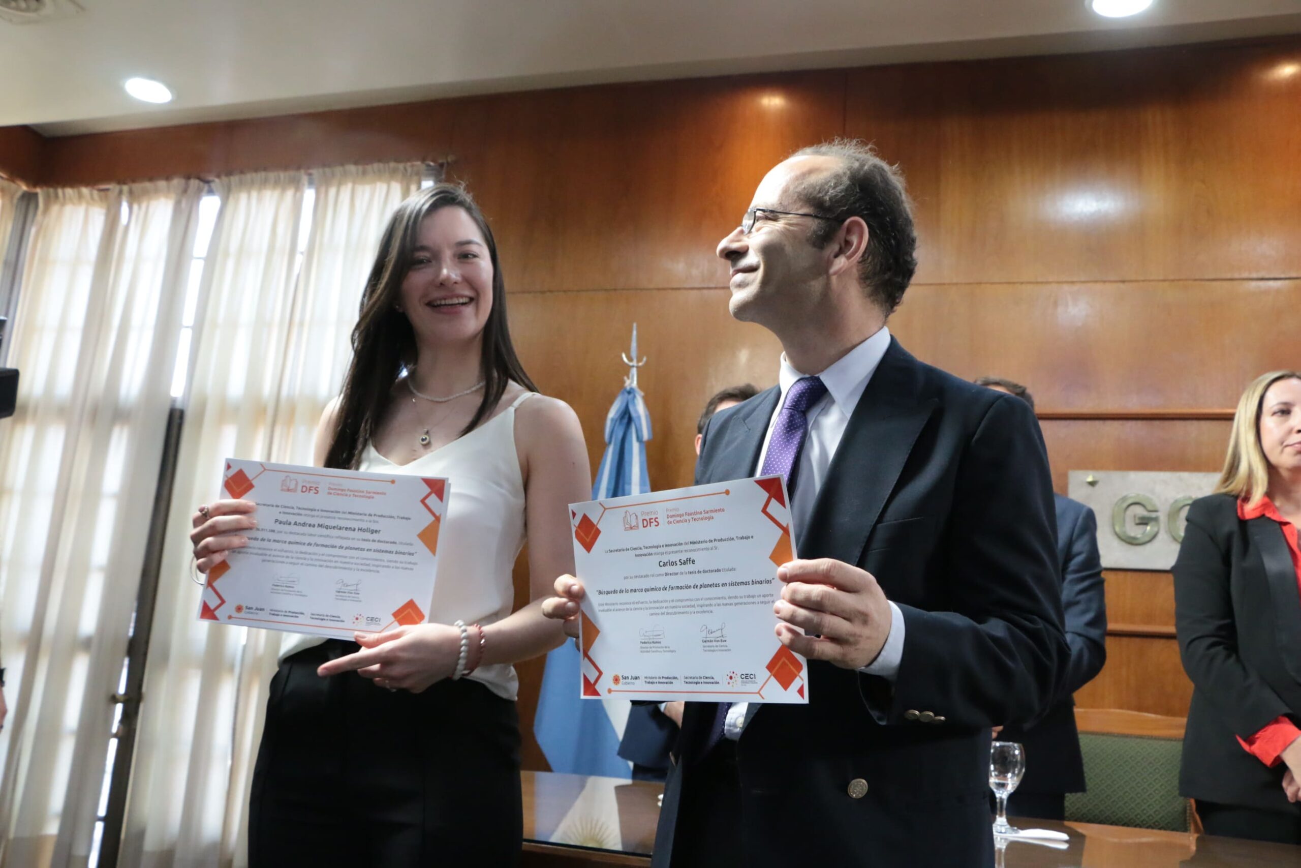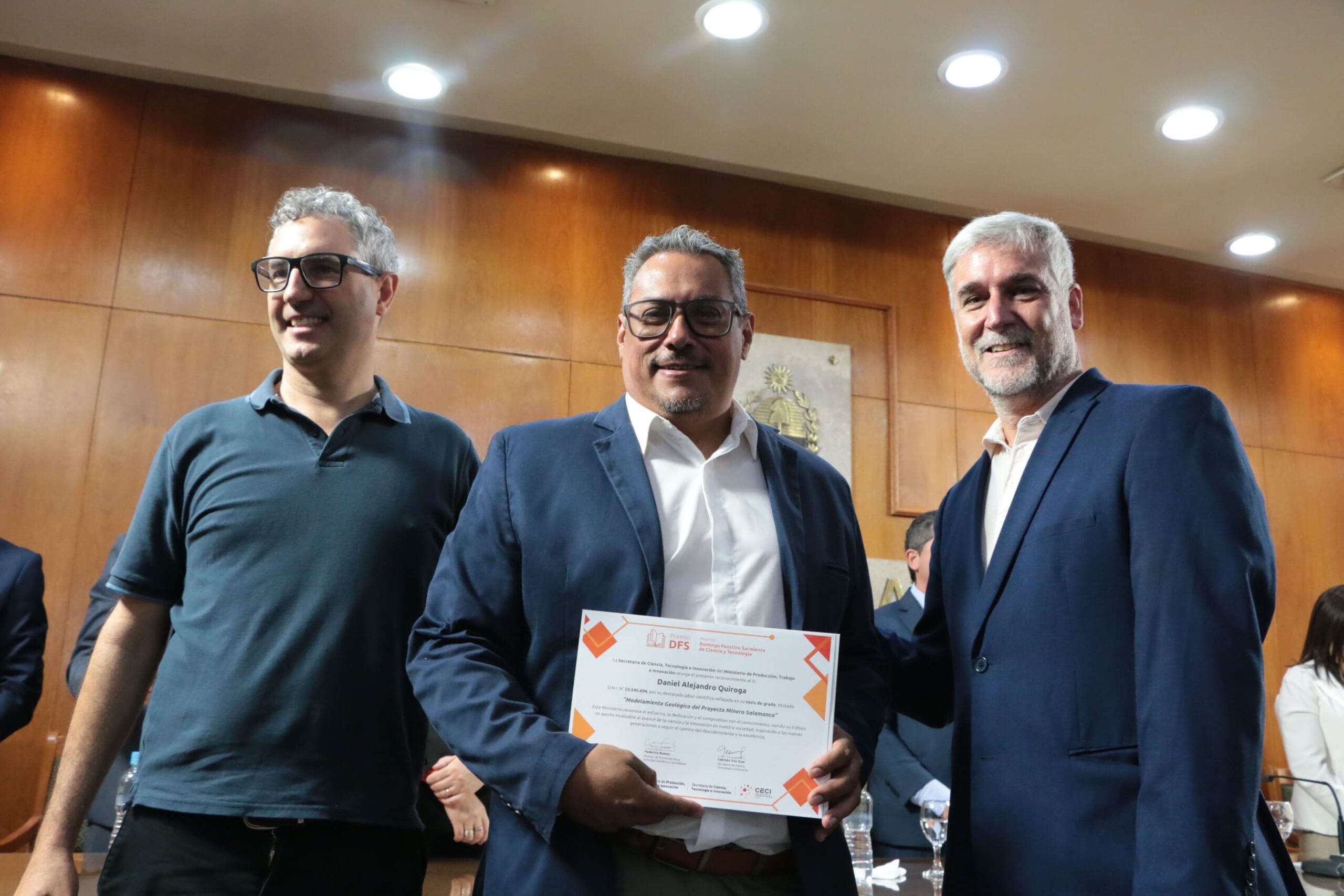 El anuncio de los ganadores de los premios Domingo F. Sarmiento se realizΓ³ este lunes 20 de octubre en un acto celebrado en Casa de Gobierno, con la presencia del Gobernador y Vicegobernador de San Juan, Dr. Marcelo Orrego y Dr. FabiΓ‘n MartΓn, respectivamente; la Vicerrectora de la UNSJ, Esp. Andrea Leceta; el Decano de la FCEFN, Dr. Jorge Castro; la Jefa del Departamento de GeologΓa, Dra. Gabriela Torres; la Jefa del Departamento de BiologΓa, Lic. Cecilia Montani; y el Secretario de Investigaciones de la FCEFN, Dr. MartΓn Rothis. TambiΓ©n estuvieron presentes representantes del sistema cientΓfico y acadΓ©mico.