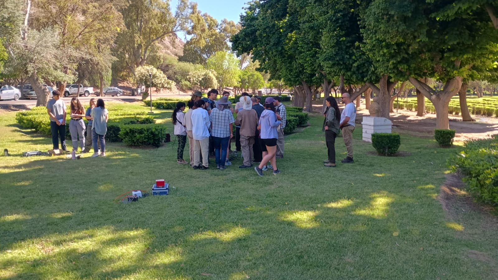Durante la visita, los estudiantes realizaron prΓ‘cticas en el JardΓn de los Poetas, donde aplicaron tΓ©cnicas de gravimetrΓa, magnetometrΓa y topografΓa de refracciΓ³n sΓsmica. Bajo la supervisiΓ³n de los docentes e investigadores del IGSV βDr. Marcelo GonzΓ‘lez, Dr. Marcos SΓ‘nchez, Dr. Mario Ernesto GimΓ©nez y Dr. Lince Klingerβ los participantes procesaron los datos en gabinete, afianzando los conceptos aprendidos y comprendiendo la relaciΓ³n entre la teorΓa y la aplicaciΓ³n prΓ‘ctica.