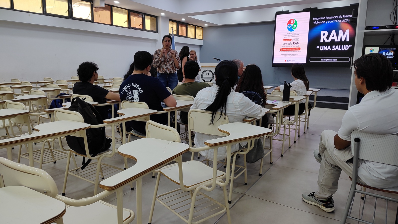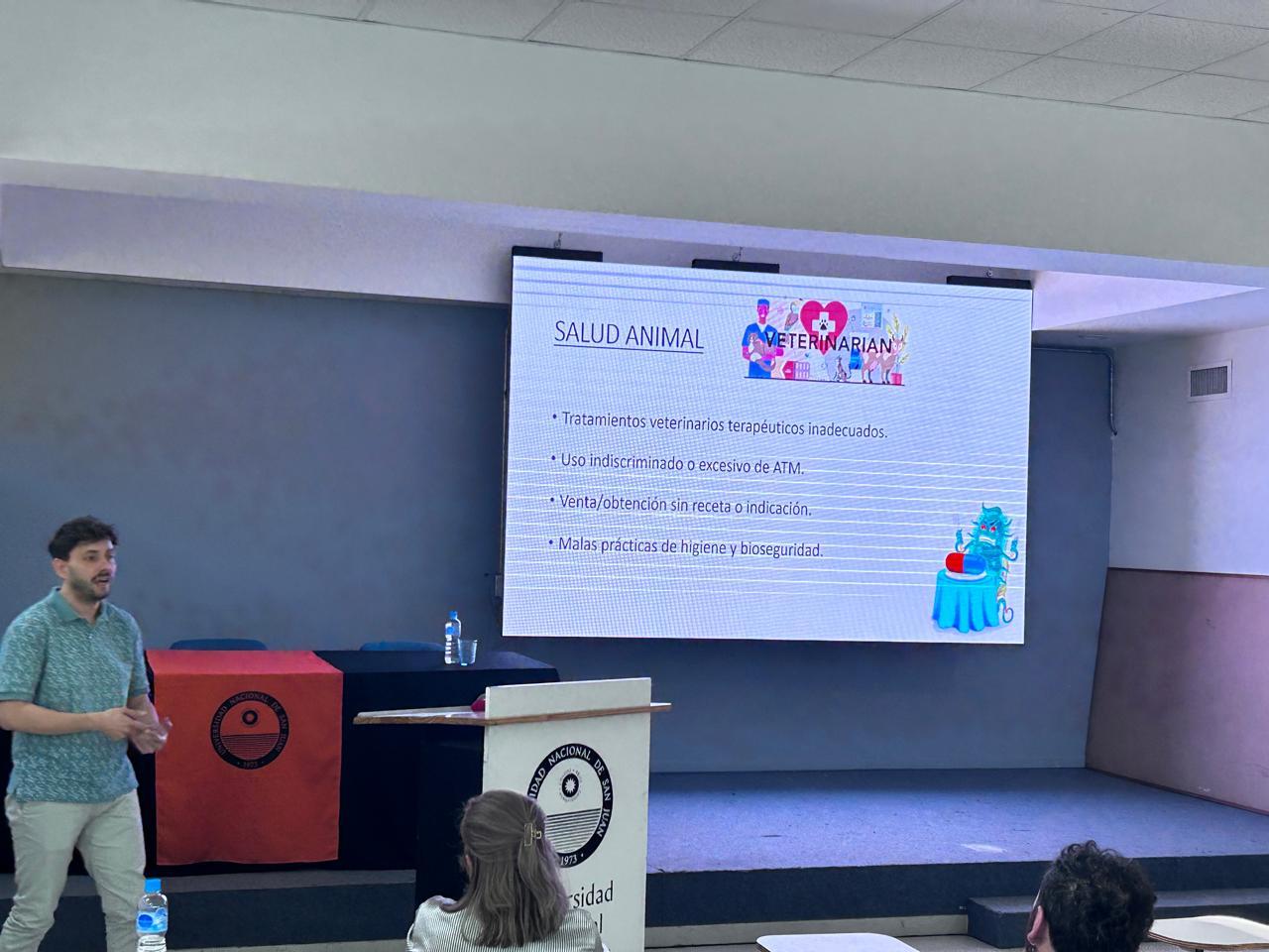 La actividad, dirigida principalmente a estudiantes de Biología, contó con la participación de la Bioquímica Marisa López, la Dra. Daiana Escudero (Infectóloga) y el biólogo Dr. Rodrigo Nieva; quienes disertaron sobre “Las facultades como puente en la respuesta One Health frente a la Resistencia Antimicrobiana”.