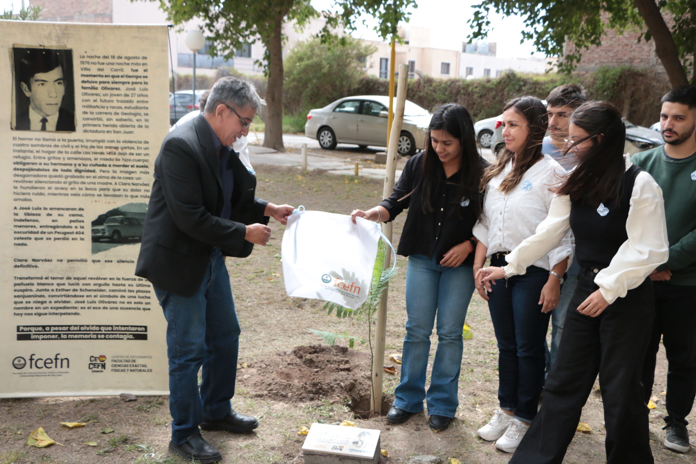 En el marco del Día Nacional por la Memoria, la Verdad y la Justicia, la Facultad de Ciencias Exactas, Físicas y Naturales (FCEFN) de la UNSJ llevó adelante un emotivo acto conmemorativo, organizado conjuntamente con el Centro de Estudiantes de esta unidad académica y la Federación Universitaria de San Juan. Sentido homenaje a los estudiantes desaparecidos José Luis Olivarez y Juan Gutierrez.